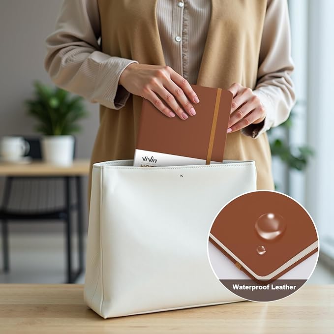 - 【Hardcover Leather Journal】The journaling notebooks crafted with waterproof faux leather, this A5 notebook (5.5"x8.3") balances durability and portability. The smooth-touch cover withstands daily commutes while protecting your ideas in style.