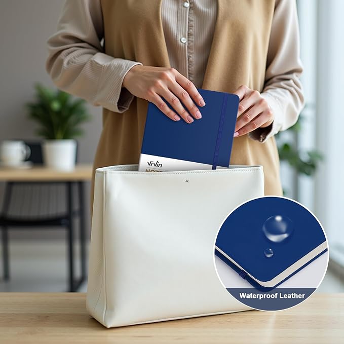 • 【Hardcover Leather Journal】The journaling notebooks crafted with waterproof faux leather, this A5 notebook (5.5"x8.3") balances durability and portability. The smooth-touch cover withstands daily commutes while protecting your ideas in style.