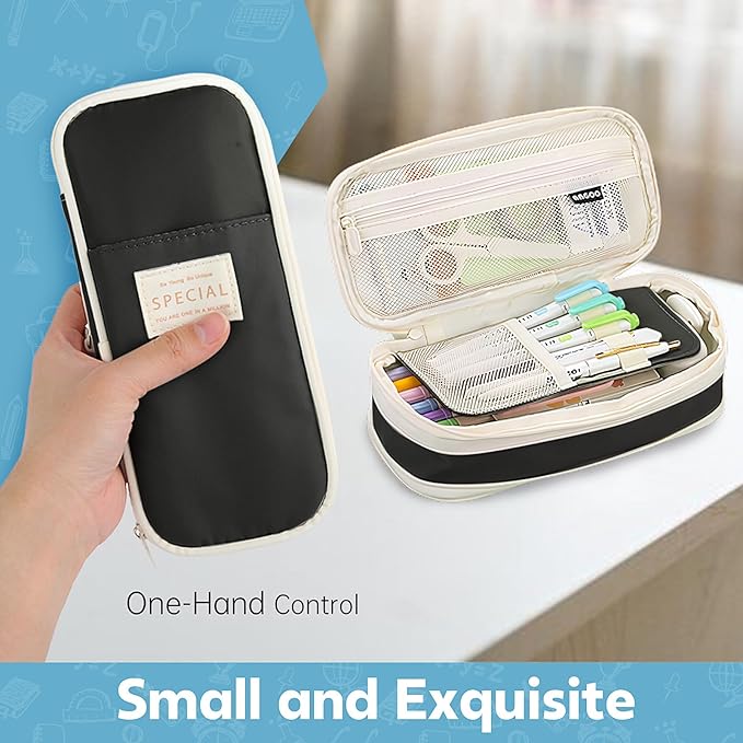 - 👝【Versatile Storage】This pencil case is not only capable of holding pens but also perfect for organizing pencils, ballpoint pens, erasers, rulers, and other stationery items. Its well-designed compartments and slots ensure that your writing instruments and accessories stay securely in place.
