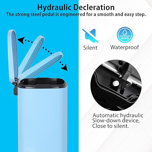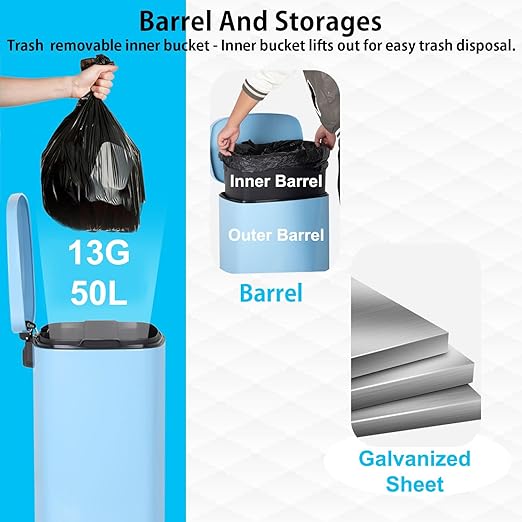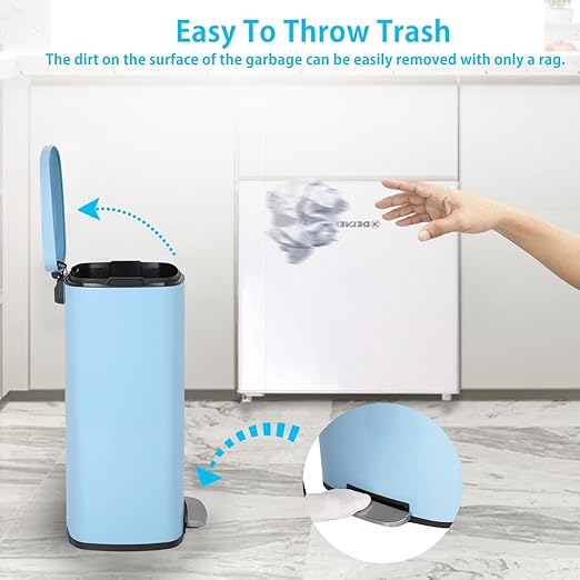 PayLessHere Stainless Steel Trash Can with Lid - Removable Inner Bucket, Foot Pedal Soft Close for Office, Home, Kitchen Garbage Bin (Blue, 13 G)