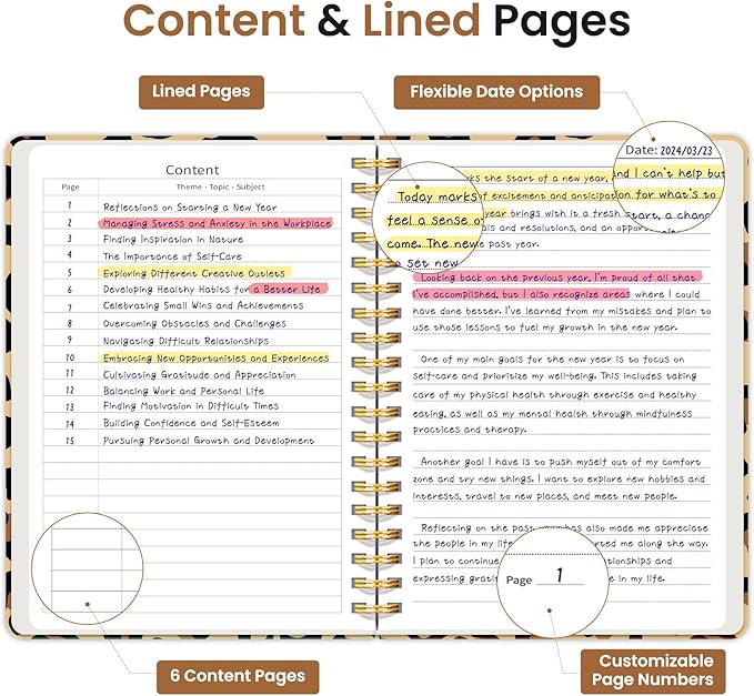 - Structured College-Ruled Pages: Featuring 7mm college-ruled lines, this journal notebook helps keep your writing organized and legible. The evenly spaced lines are perfect for structured notes, work lists, or detailed writing, making it an excellent choice for school students, professionals, and writers alike. It also includes 6 content pages, perfect for creating an index for easy reference.
