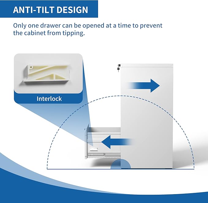 - 【Anti-tilt Design】This vertical legal file cabinet designed with full extension and steel ball-bearing suspension, all drawers of the file cabinets can be opened and closed quietly and easily. The anti-tilt system ensures that only one drawer can be open at a time, preventing the metal file cabinet from tipping over. You can have peace of mind knowing that your important documents and items are safe and secure.