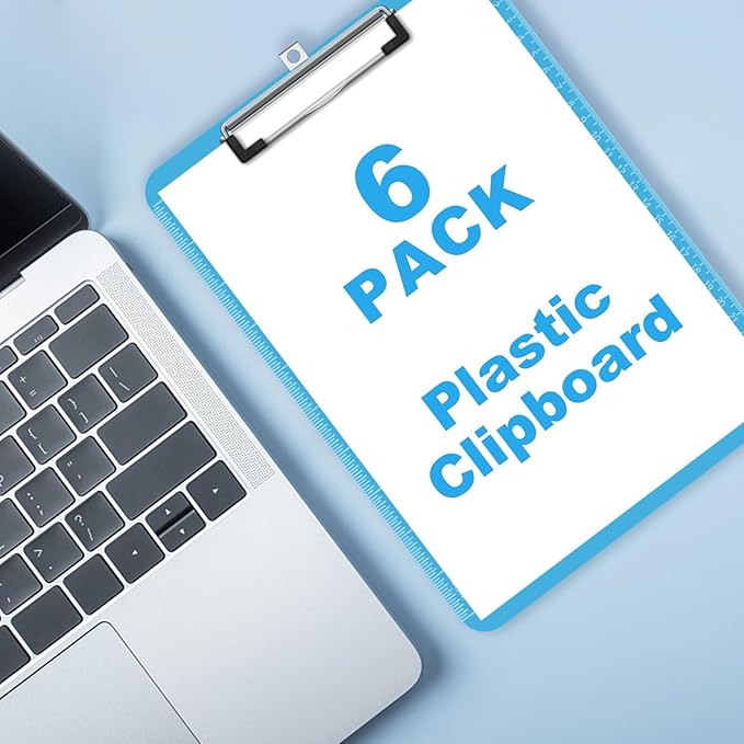 TOTiyea Clipboard (Set of 6), 12.5 x 9 Inch Multi Color, Plastic Clipboard with Low Profile Clip, 75 Sheets Capacity, Standard Letter Size A4