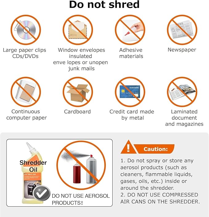 - 【Continuous Performance】The operating time is 3 minutes, with a 20-minute cooling cycle. If the shredding time exceeds 3 minutes, the overheating LED indicator will light up. After a 20-minute cooling cycle, it can resume operation