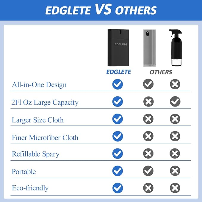 - Lifetime Refillable – Save 50% vs. Disposable Cleaners – The Edglete screen cleaner kit is expertly designed to clean a wide range of delicate electronic screens, including those on computers, car screen, laptops, smartphones, console, monitors, pc, MacBook, iPads, iPhones, Mac, tablets, glasses, cameras, camera lens, TVs, and even the most sensitive OLED, LCD, LED, and CRT screens. A must-have accessory for anyone who appreciates a flawless viewing experience