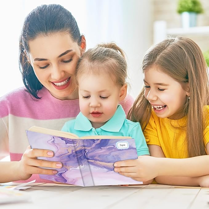 - Book cover kit: This pack comes with 12pcs stretchable book covers in 6 different marble print styles, along with a sheet of name tag labels. These jumbo book covers fit books measuring 9x11 inches and can stretch up to 10x12.5 inches.