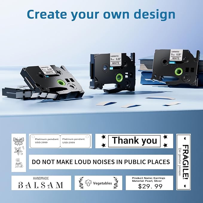- Effortless Application: Our upgraded 9 mm 0.35 inch laminated TZ tapes feature a split-back design for quick, frustration-free peeling. Apply labels smoothly to any surface – even with short nails – making organization projects in home offices or kitchens a breeze.