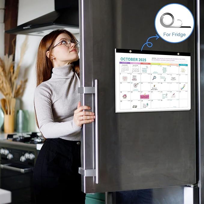 - 📔【For Desktop/Wall/Fridge】2025-2026 yearly calendar comes with a magnetic strip, a hanging string and 3 stickers. It can be placed not only on the desktop, but also on the wall and refrigerator, Stickers help you plan your life better. In addition, the cutting line allows you to easily tear off the pages of each month