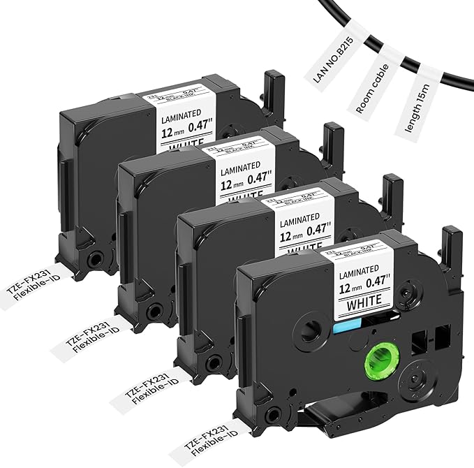 - 【Premium Quality & Clear Printing】TZe-FX231 Black text on white tape provides crisp, bold printing for instant identification. The laminated surface withstand water, abrasion, and extreme temperatures (-20°C to 120°C), ensuring labels stay readable in harsh environments