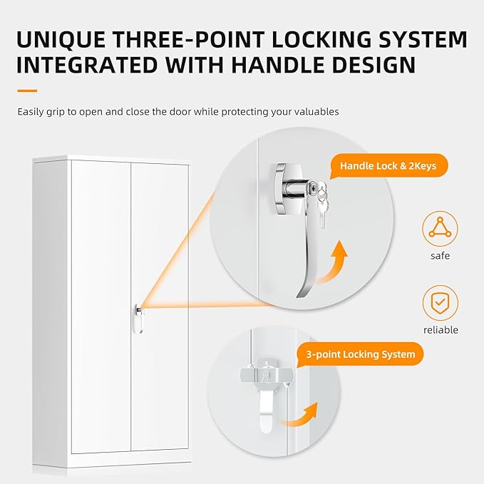- 【Considerate Design】: The upgraded lockable lockers are designed to be more practical. Each door with rubber buffers, which will reduce the noisy while closing door, and avoid the door from scratches. Adjustable shelves make it easy to customize your storage cabinet space.