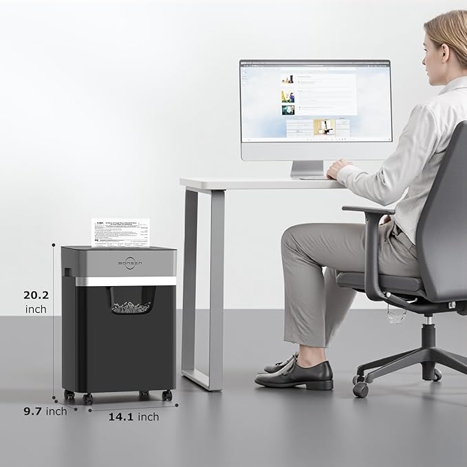 - 20-Minute Continuous Shredding Power: Equipped with an advanced patented cooling system, BONSEN home office paper shredder can run continuously for up to 20 minutes, shredding up to 1,400 sheets of paper in one session. After heavy-duty tasks, it automatically enters 30-minute cooldown mode to protect internal components, ensuring long-lasting durability for daily office or home use.