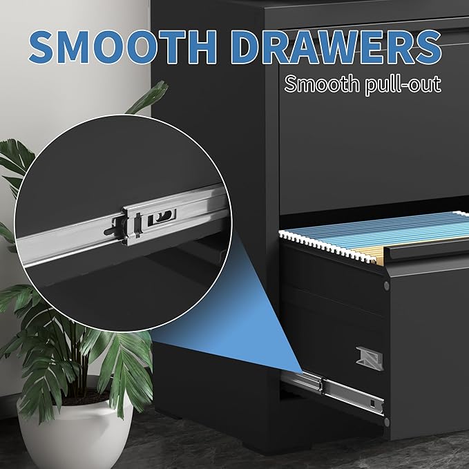 - 【Sturdy and Functional】 The 2 drawer file cabinet size:D15.75"*W35.43"*H28.5", drawer size:D13.98"*W32.44"*H9.8", each drawer can support up to 55 lbs. The lateral file cabinet is equipped with premium full-extension metal drawer slides, allowing for smooth and easy access even when fully loaded, making organization a breeze.