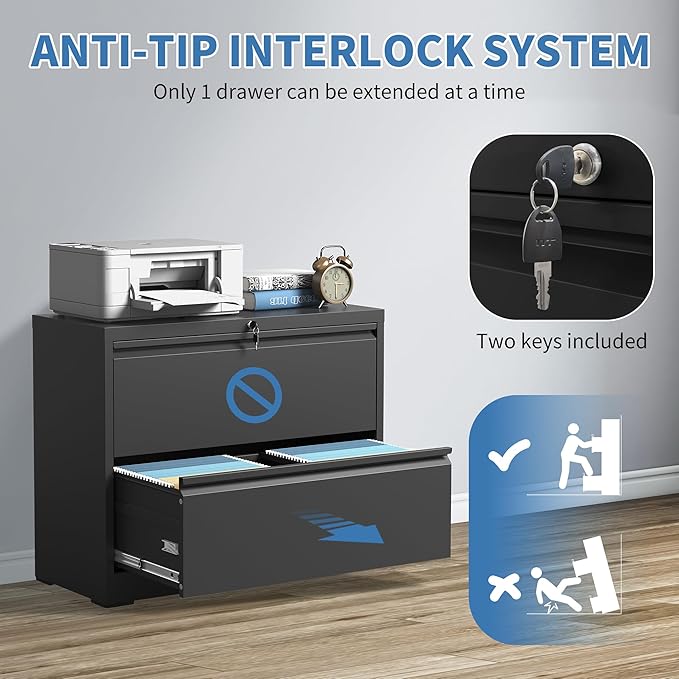 - 【Enhanced Safety Features】 To prevent tipping hazards, FLIXELIO 2 drawer file cabinet with lock includes a built-in anti-tip mechanism that allows only one drawer to open at a time. This thoughtful design minimizes safety risks and ensures stability, even when multiple drawers are in use.