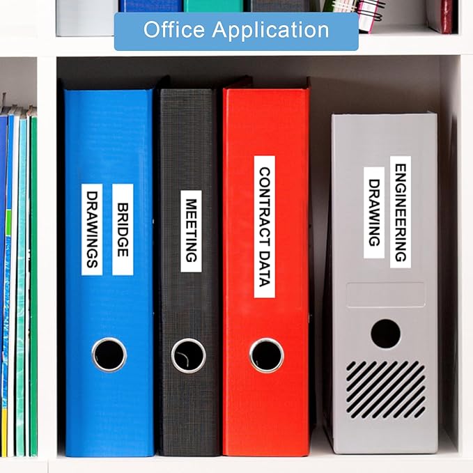 - Wide Applicability: Our tze 12mm 0.47 white label tape can be used for business, home, and industrial applications, even in harsh weather conditions. For labeling storage bins, kitchen utensils, and food, as well as office supplies, folders, and books