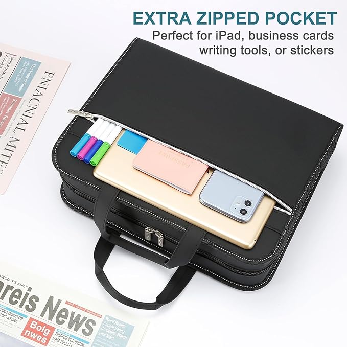 - Convenient: Designed with a convenient Handle&Carrying Strap, this document file with handle is portable and easy to carry. Briefcase for business trip, office, school, and travel, you can transport your important documents with easy.