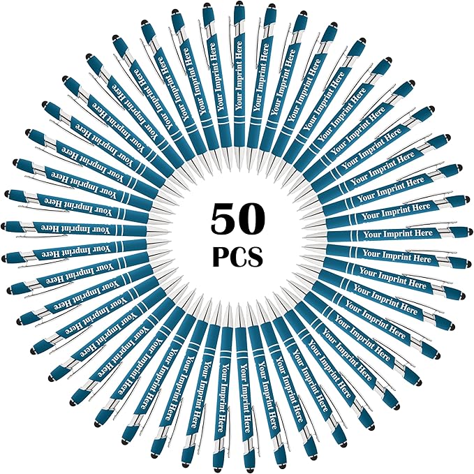 Up to 500 Pcs Custom Pens Bulk | Rainbow of Colors | Soft-Touch Metal Black Ink Personalized with Name or Message (Light Blue, 50 pcs)