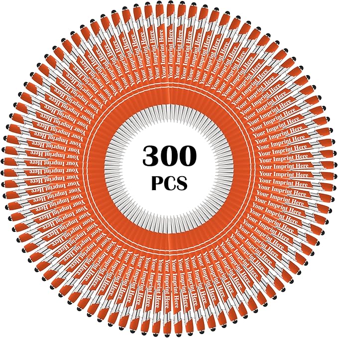 Up to 500 Pcs Custom Pens Bulk | Rainbow of Colors | Soft-Touch Metal Black Ink Personalized with Name or Message (Orange, 300 pcs)