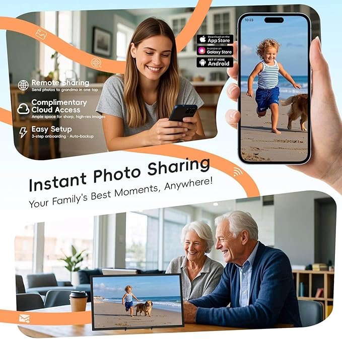 - Instant Photo Sharing, Anywhere: Capture birthdays, holidays and everyday joys. Send photos to your frame in seconds using our app, from anywhere in the world. Keep loved ones close with real-time photo. Cherish moments together.