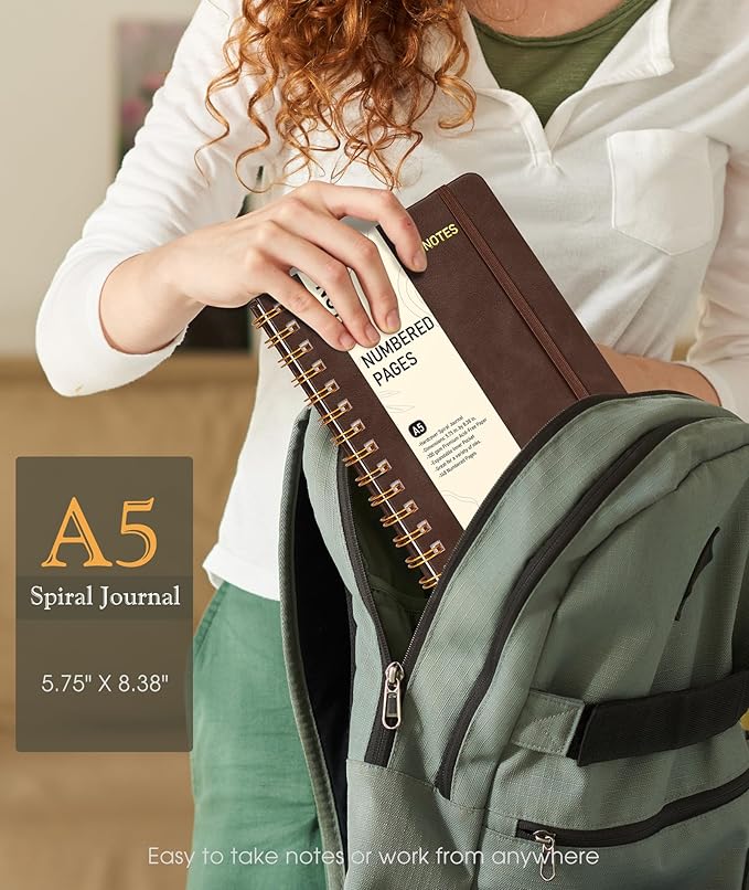 - 【Journal Notebook with 150 Numbered Pages】 The lined spiral journal notebook features water-resistant vegan leather cover touched comfortably, which will help to protect the pages inside and provide a comfortable writing surface. With 150 numbered pages and a 2-page content pages for keeping track of anniversaries, special events, important details, making it easier to review your notes later. Inspirational quotes on the info page to motivate moving forward.