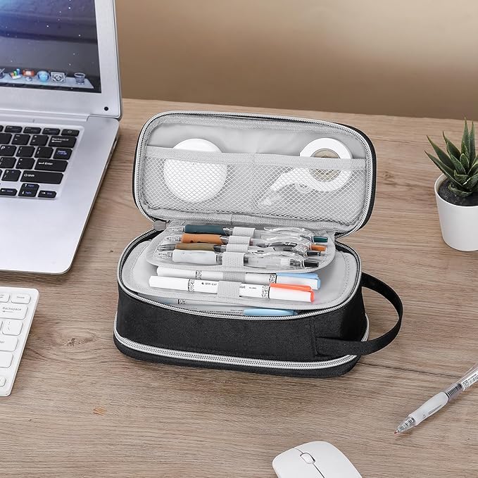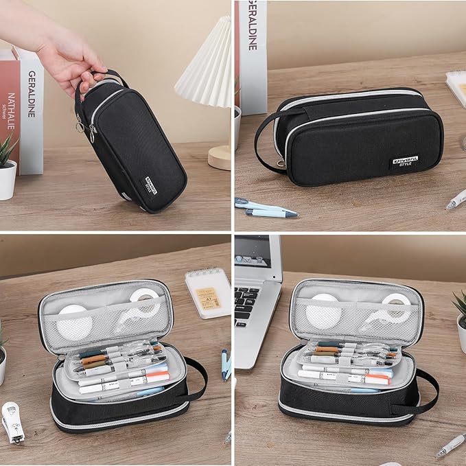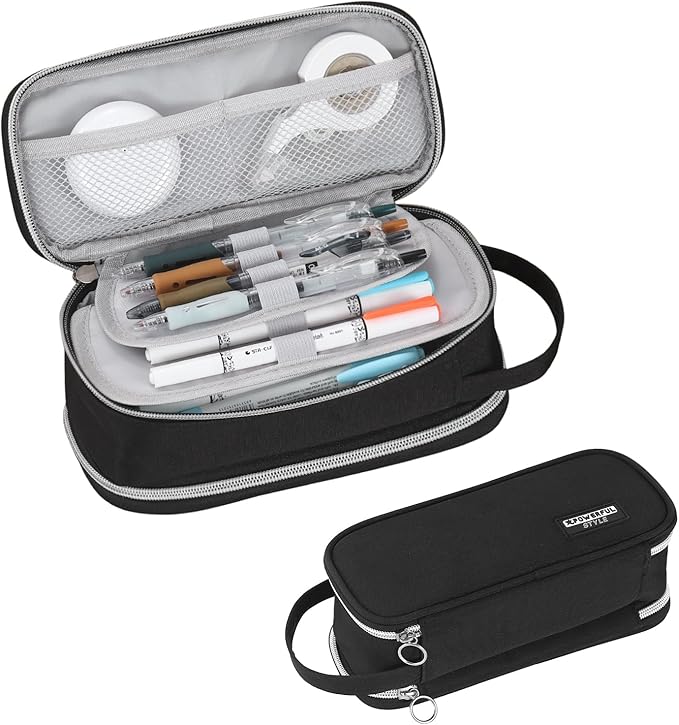 Pencil Case Large Zipper Pencil Pouch for Girls Kids Teens Adults Aesthetic Pencil Bag Stationery Organizer Pencil Case with Handle for School Black