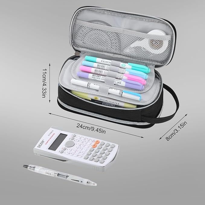 - Large Pencil Case - The dimensions of this pencil case are 9.45 x 4.35 x 3.15 inches, it can hold up to 70-90 pens/pencils, 20cm rulers, erasers, calculators, scissors, and other learning tools.