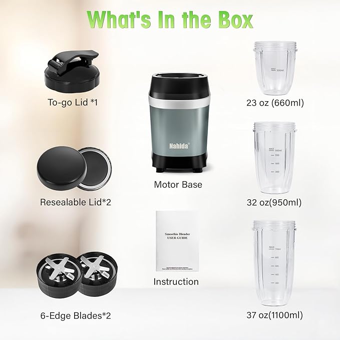 - 1200W HIGH-PERFORMANCE BLENDER: 1200Watt, max rotating speed up to 25,000 RPM, faster and stronger, Nahida Personal Bledner can easily and quickly crush ice cubes, vegetables and frozen fruits. Whether you’re making nutrient-packed smoothies, protein shakes, or refreshing frozen beverages, this blender handles the toughest ingredients in seconds. Change your life with ease