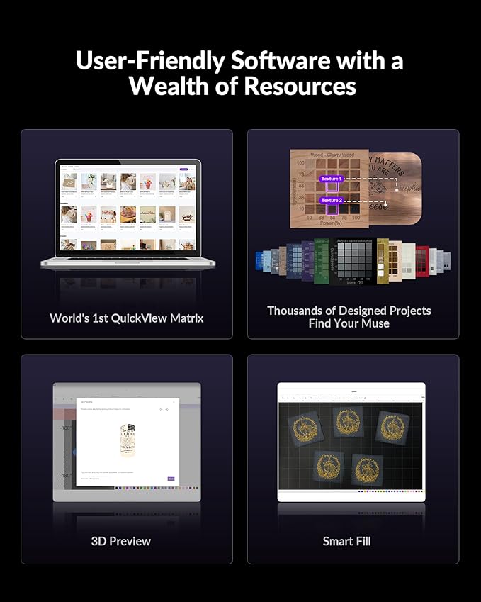 - Class 1 Certified, Safety First: with fully metal enclosed structure, and a eyes-protective cover that automatically filters harmful blue light, the laser cutter machine auto stops once the lid is opened, this ensures the safety of children and pets, making it ideal for schools, workshops, and home use.