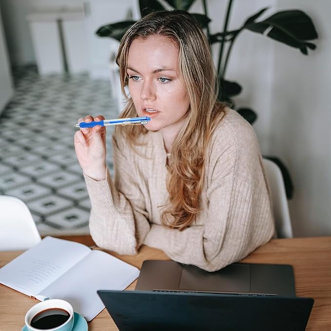 - 【Super Smooth writing experience】: The Retractable design ensures that gel pens have blue ink ready to use at any time. The blue ink color produces clear text, making it easy to read. The pen tip slides effortlessly on paper, providing a smooth and enjoyable writing experience that will make any task more comfortable.
