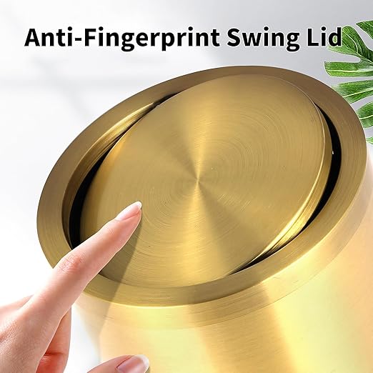 - 【Exquisite Technology】This gold garbage can adopted with wire drawing technology, which makes its appearance more noble and elegant. It is fingerprints-proof and Rust-proof, easy to clean and maintain, keeping it clean and beautiful.