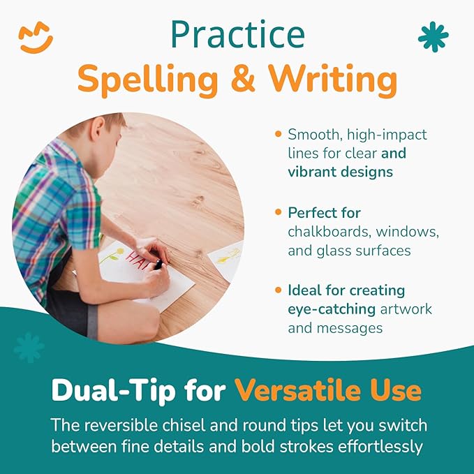 - Great for Kids & Adults: Designed for all skill levels, these liquid chalk markers are fun and easy to use; Whether you're a teacher, artist, or parent, they’re perfect for crafting, learning activities, and creative projects at home or school
