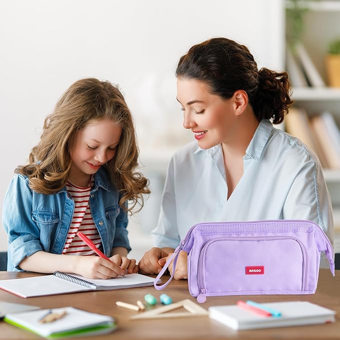 MAMUNU Pencil Case Pouch Large Capacity with Compartments, Pencil Case Pouch Bag with Zipper Handle for Teen Girls Adults Women, Portable Pen Bag Stationery Organizer for Office School Travel, Purple