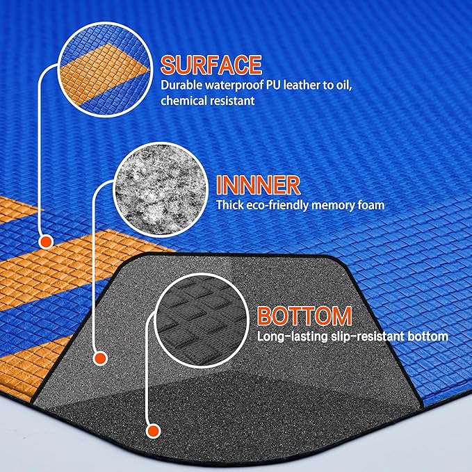 - NON-SLIP SURFACE: PU leather top ensures that the floor mat surface will not be out of shape with use, and is highly resistant to punctures and tears. Low maintenance, high performance. Long-term use does not cause cracking or even damage to the surface