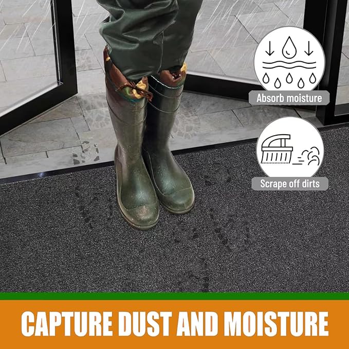 - [CAPTURES DIRT AND MOISTURE]:The sturdy woven topside and deep grooves effectively capture dirt, mud, and moisture; the SRDDQLC door mat is designed to prevent unwanted debris from being tracked into your home.
