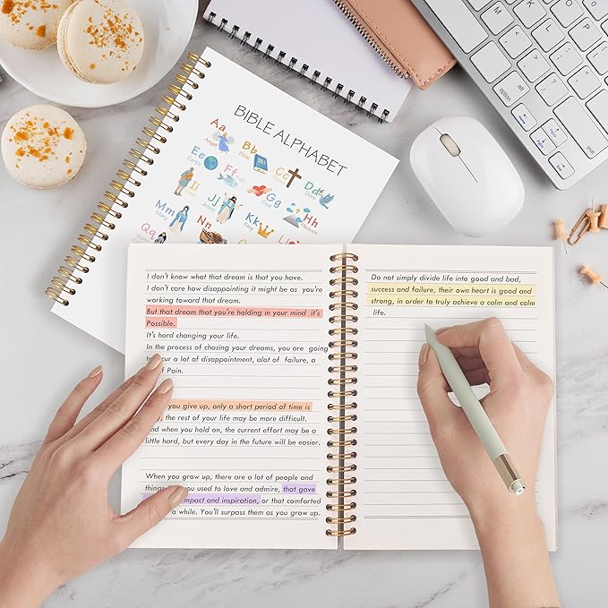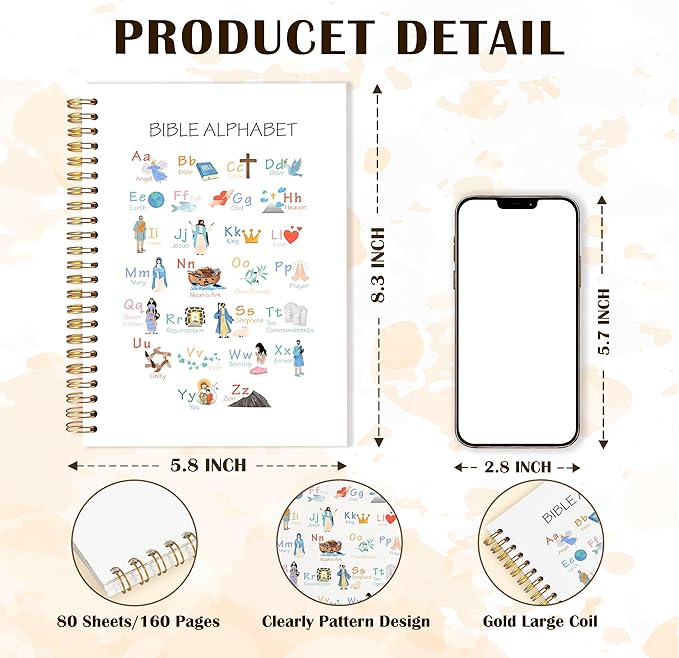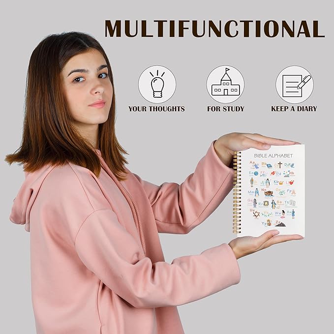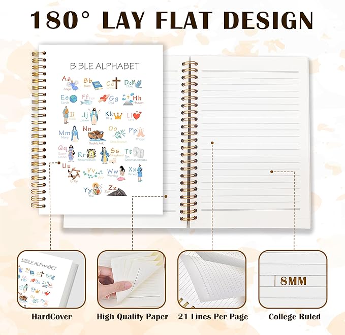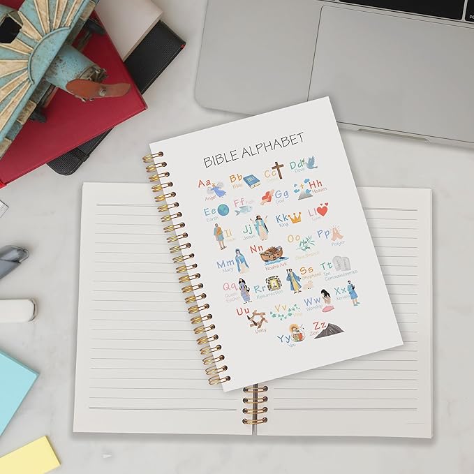 Qabliqo Bible Alphabet Christian Spiral Notebooks, Educational Bible Verse Journals for Writing, ABC Alphabet Christian Journal, Religious Scripture Notebook for Note Taking, 5.5x8.3 Inch