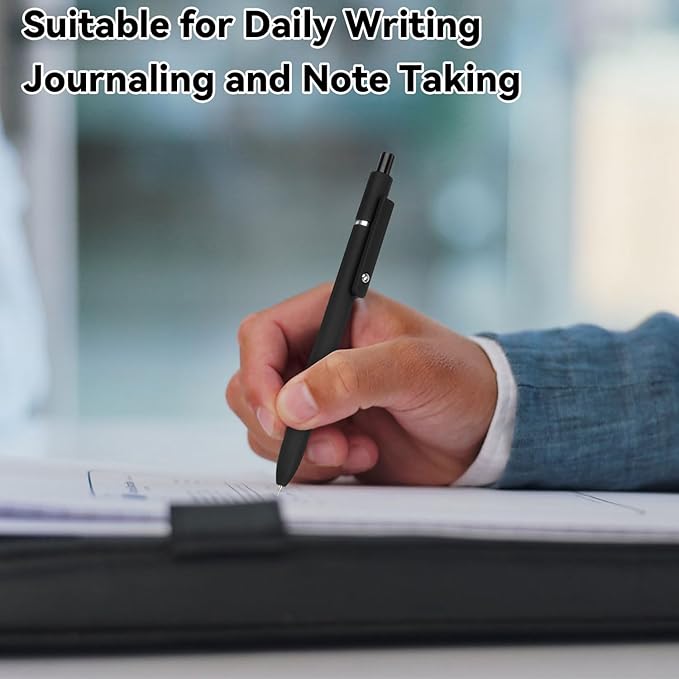 - 0.5mm Fine Point Black Ink Pens:0.5mm Retractable Rolling Ball Gel Pens with fade-resistant ink, there’s no need to worry about getting ink on your hands or desk, as it won’t fade, bleed, or smudge. Note: After using the gel pen, it is suggested to lay the pen flat or the nib face up. This helps protect the pen tip