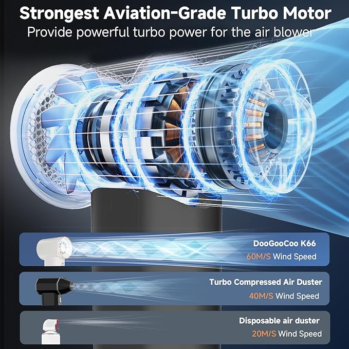 - [Best-Replace for Compressed Air Can] - Cordless reusable turbo air blower with 5 gear. Freely adjustable the speed, more convenient and durable, enhancing your cleaning experience; Moreover, it is also an environmentally friendly, energy-saving, and cost-saving cleaning product.