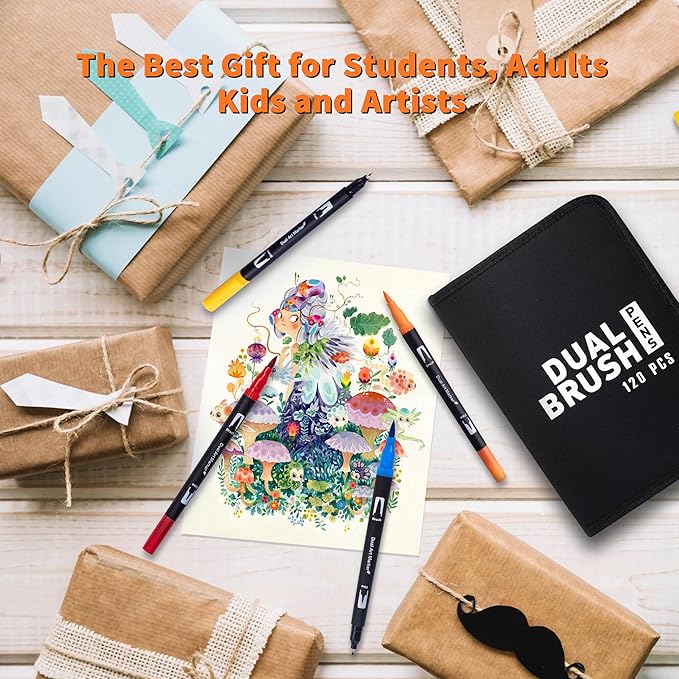 Dual Markers Brush Pens, 120 Coloring Pens for Adults – Premium Art Supplies for Kids & Adults, Perfect for Coloring Books, Hand Lettering, Calligraphy, and Drawing