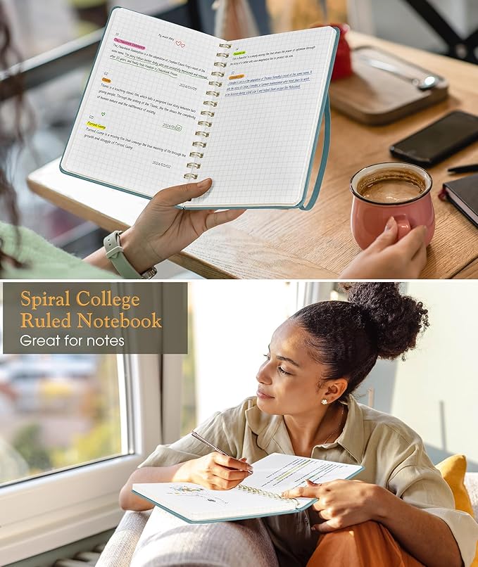 Graph Spiral Journal Notebook, A5 Hardcover Spiral Journals for Women Men, 100 GSM Graph Paper Notebooks, 150 Pages Spiral Bound Grid Notebook for Writing Note Taking Work 5.75" x 8.38", Misty Blue