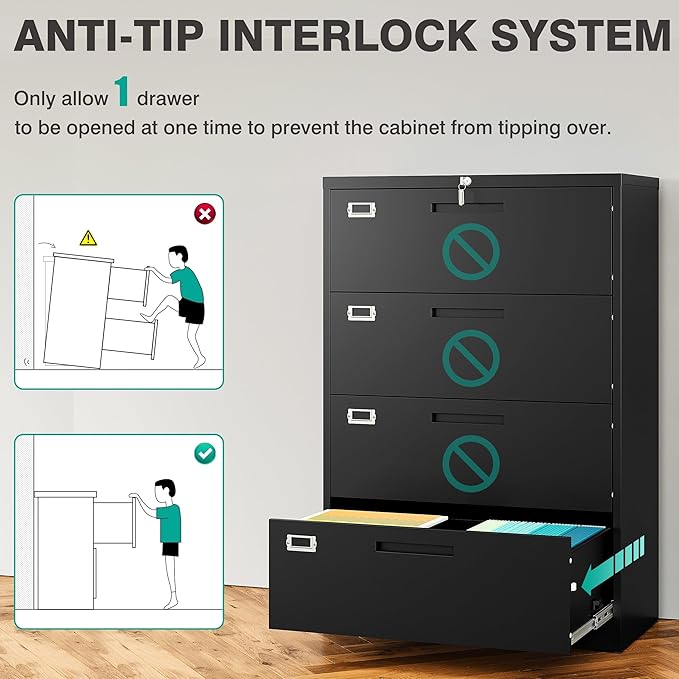 - 【Anti-tilt Mechanism】: All drawer interlocking mechanisms are designed to prevent tilting and ensure that only one drawer can be opened at a time; the file cabinet has 1 lock and 2 foldable keys to effectively protect your private documents and valuables. It is suitable for various scenes such as offices,home