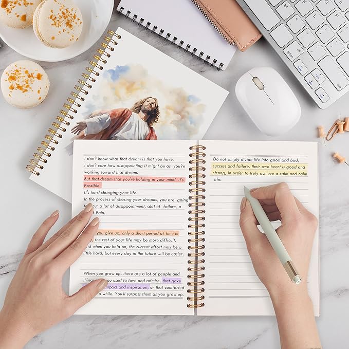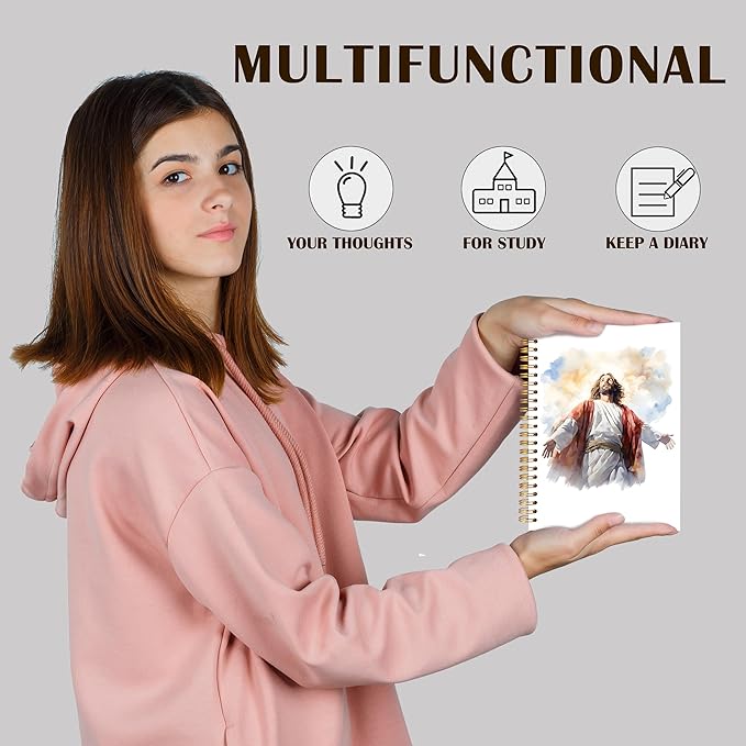Qabliqo Jesus Christian Spiral Notebooks, Watercolor Jesus Journals for Writing, Christian Journal for Women Men, Faith Based Gifts, Retro Religious Notebook for Note Taking, 5.5x8.3 Inch