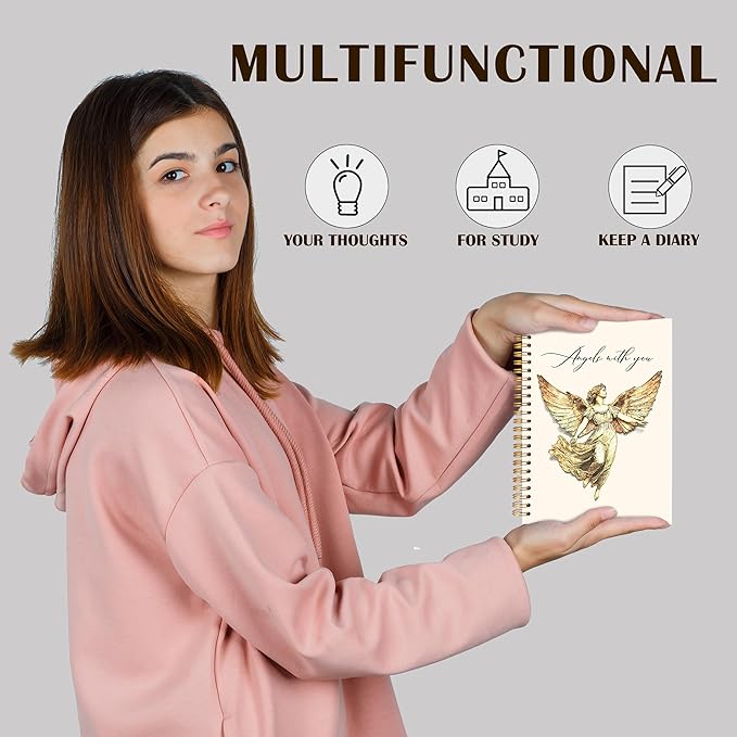 Qabliqo Angel Christian Spiral Notebooks, Faith Based Gifts Journals for Writing, Religious Christian Journal for Women, Prayer Journal, Angels with You Notebook for Note Taking, 5.5x8.3 Inch