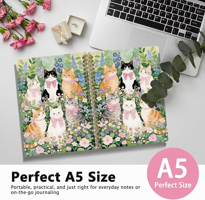 LIANHW Coquette Cute Pink Bow Cats Notebook for Women Girls, Cute Preppy Aesthetic School Supplies, Cat Lover Gifts, Coquette Pink Bow Hardcover Lined Notebook 5.5 x 8.3