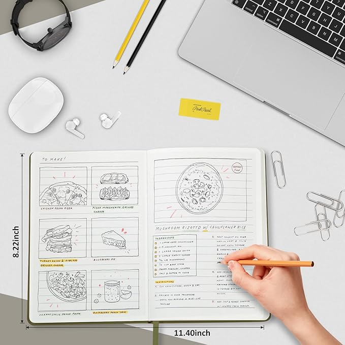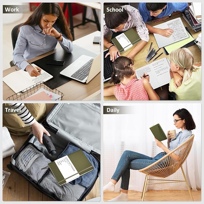 - 180° Lay Flat Design - The 180° lay flat design makes writing easier, reading more convenient, and taking notes more efficient. At the same time, the hardcover notebook is designed with an elastic closure band to ensure it is tightly closed to protect your content, and the inner paper will not be curled, and will be kept flat.