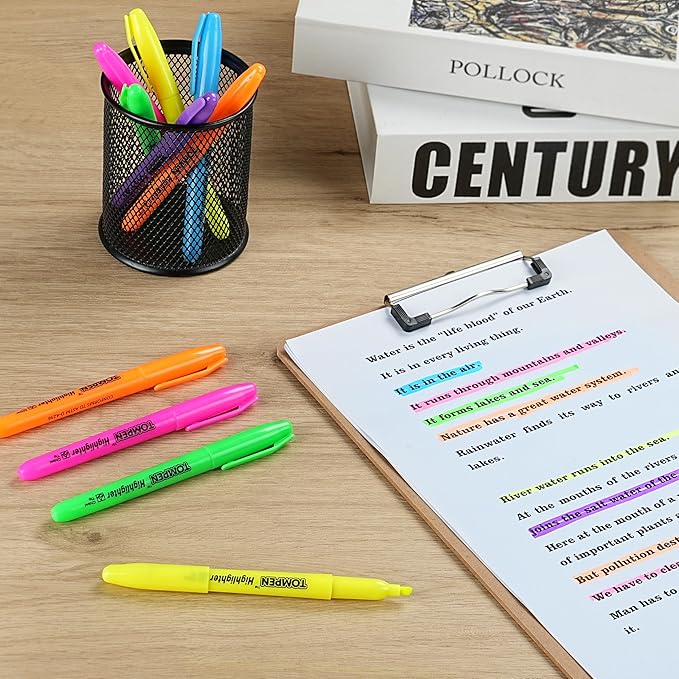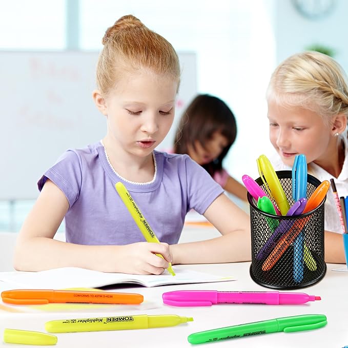 - Bulk Set of 48 Highlighters in 6 Bright Colors:Includes 8 pens each in fluorescent yellow, pink, blue, green, orange, and purple. Ideal for color coding, note-taking, and organizing—great for classrooms, offices, and home use