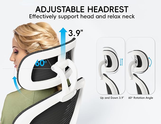 - Adjustable 3D Headrest for Neck & Shoulder Relief:Customize your comfort with our 3D adjustable headrest, designed to cradle your neck and shoulders in the ideal position. Tilt, height, and angle adjustments ensure proper alignment, reducing strain from hours at your desk. Finally, a chair that cares for your posture as much as you do