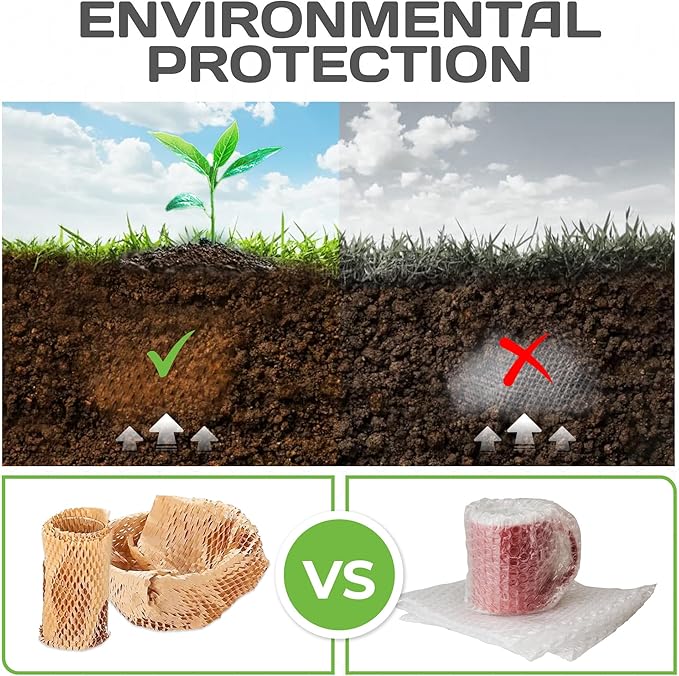 - ECO-FRIENDLY AND SUSTAINABLE – Our honeycomb packing paper is made from PEFC-certified Canadian paper that is 100% sustainable and replaces traditional plastic and bubblewrap for packing, offering an environmentally-friendly solution without compromising on protection for fragile items during shipment.