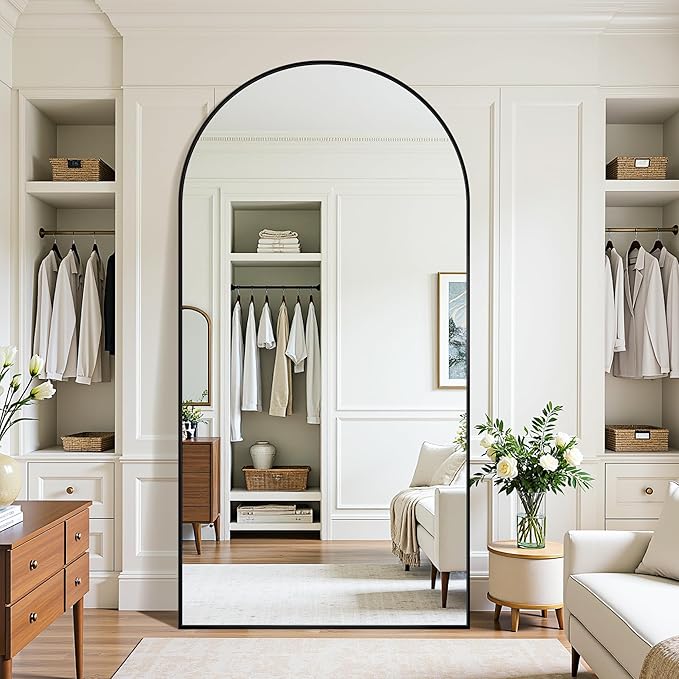 - Premium Material and Unique Design: This stand up mirror full length features a sturdy and durable aluminum alloy thin frame, Its sleek curved shape design makes it ideal for any modern or traditional decorative style, effortlessly enhancing the ambiance of any room