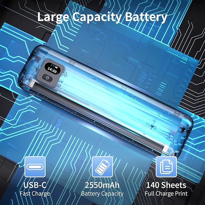 - Portable and Compact: When traveling you can take the portable printer wireless in your backpack or tote bag wherever you need. It is compact and portable whether in office home or on business trips,or any outdoor occations. Print contracts,office documents,inventory lists,or study materials for school.