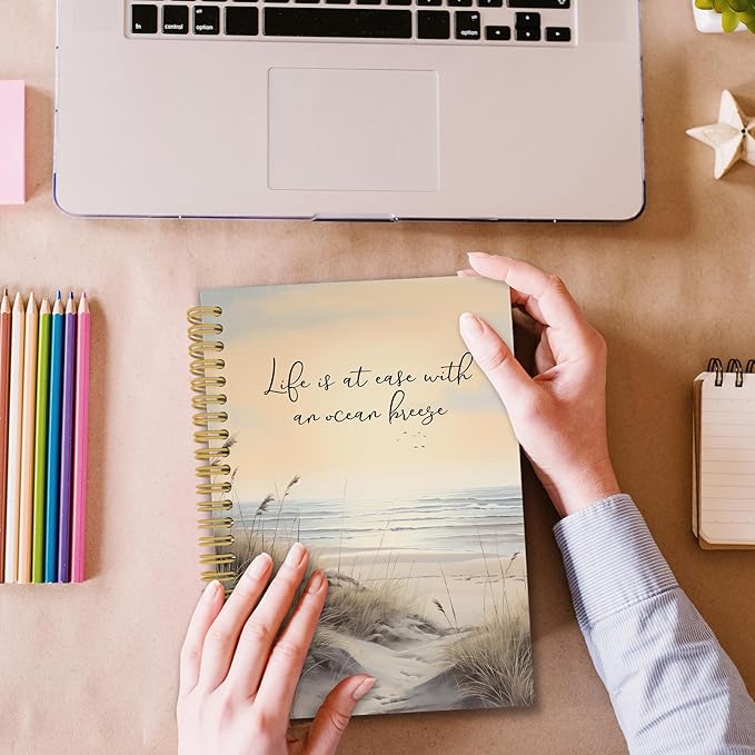 Ocean Mental Health Spiral Notebook, Coastal Relax Inspirational Journaling Notebooks for Counselling Therapy Office School, Beach Positive Hardcover Journals for Women 160 Pages 5.5 x 8.3 Inch