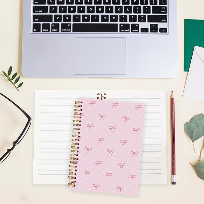 BearCake Coquette Pink Bow Notebook Journal, Preppy Cute Bow Journal for Women Girls, Pink Cute Office Supplies, Girly Aesthetic Hardcover Spiral Notebook 5.5x8.3